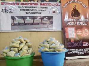 Reparto de alimentos y medicinas en el Centro San Francisco de Asís en El Alto (Bolivia)
